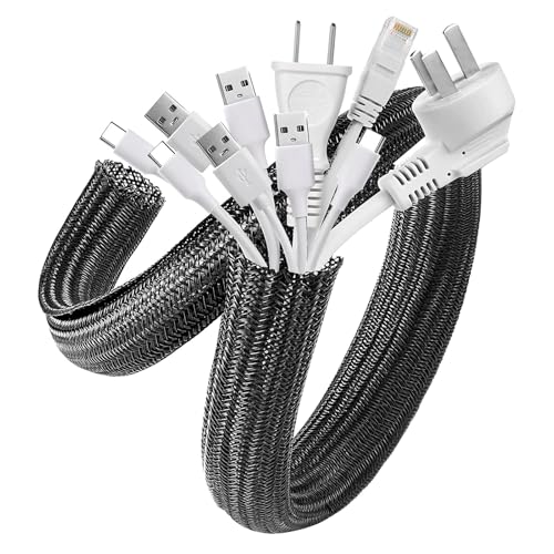 AGPTEK Kabelslang, självstängande kabelkanal, flexibelt vävt kabelhölje, kabelhantering för skrivbord, TV, dator, PC, kabelskydd för hund och katt, 10 mm, 6,1 m