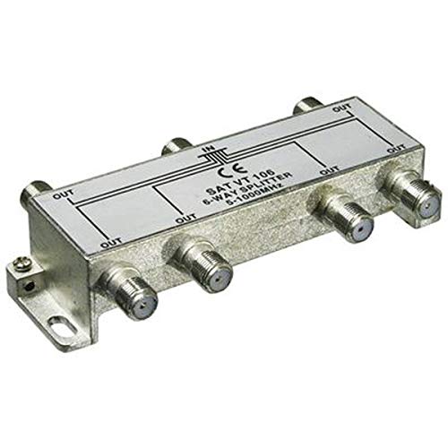 PremiumCord antennsplitter med 6 x F-kontakter, F-uttag till 6 x F-uttag, 6-vägs, 5–1 000 MHz, för kabel-TV och DVB-T2 HD