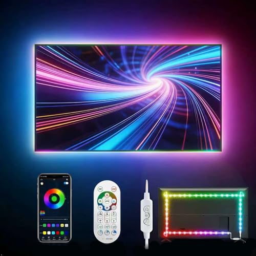 Daymeet LED-lampor för TV, TV-bakgrundsbelysning 3M USB LED-ljusremsa för 32-60 tums TV-skärm bakom belysning, RGB-färgskiftande TV-lampor med fjärrkontroll musik synkronisering Bluetooth APP-kontroll