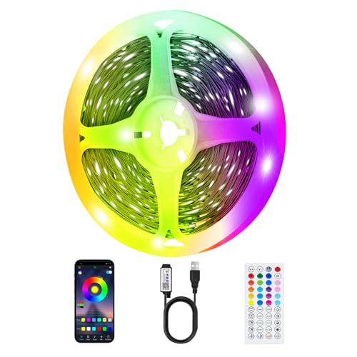 DAYBETTER LED-remsa, 15 m, 5050 RGB LED-remsa, Bluetooth, app-kontroll, LED-ljusremsa, musiksynkronisering med fjärrkontroll för sovrum, kök, vardagsrum och TV