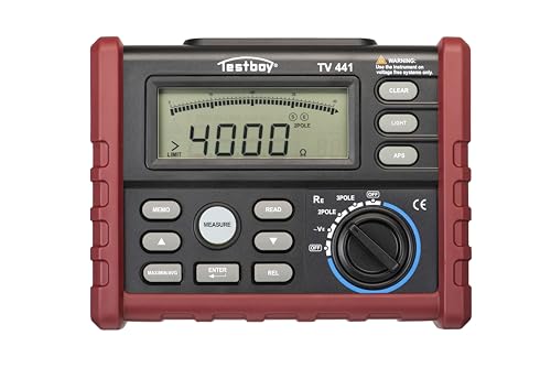 Testboy TV 441 digital jordmotståndsmätare, elektrikerverktyg (för kontroll av jordresistans, automatisk avstängning, mätvärdesminne för 100 mätvärden, LCD med stapeldiagram), röd/svart