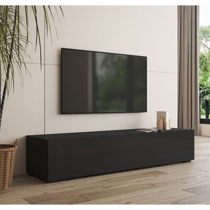 TV-möbel med ben för vardagsrum | 1 dörr med 3 fack | Färg svart | L 160 x B 40 x H 32 cm | Modell Nora H2
