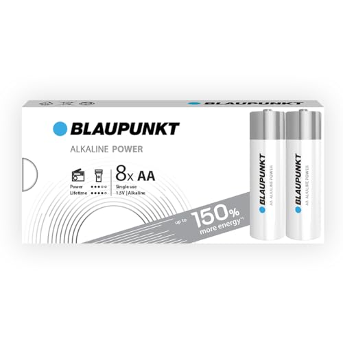 BLAUPUNKT AA alkaliska batterier, paket med 8, bäst för väggklockor, TV-fjärrkontroller, LR6BPO/8CB