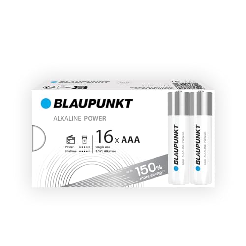 BLAUPUNKT AAA alkaliska batterier, paket med 16, bäst för väggklockor, TV-fjärrkontroller, LR03BPO/16CB