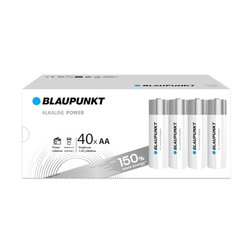 BLAUPUNKT AA alkaliska batterier, paket med 40, bäst för väggklockor, TV-fjärrkontroller, LR6BPO/40CB