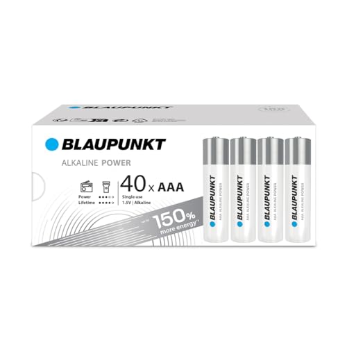 BLAUPUNKT AAA alkaliska batterier, paket med 40, bäst för väggklockor, TV-fjärrkontroller, LR03BPO/40CB