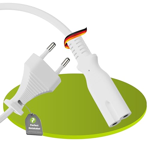 Perfekt Strömkabel 2-Polig, 5,0 m, Eurokontakt Typ C Till Euro 8 IEC C7-Uttag, För Hushållsapparater, PS3, PS4, PS5, TV UVM, Vit