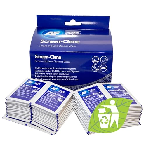 AF Screen Clene rengöringsdukar – 100 förfuktade våtservetter. Antistatiska rengöringsdukar för smartphones, TV-apparater, glasögonlinser, bärbara datorer, bildskärmar och surfplattor SCS100