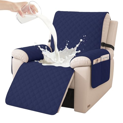 YSTELLAA Fåtöljöverdrag Vattentätt Stor 1-Sits, Relaxfåtöljskydd Anti-Halsc Med Armstöd, Tv-Fåtöljskydd Med Fickor Och Gummiband, Fåtöljskydd För Möbelskydd Skydd Mot Smuts Och Repor, Mörkblå