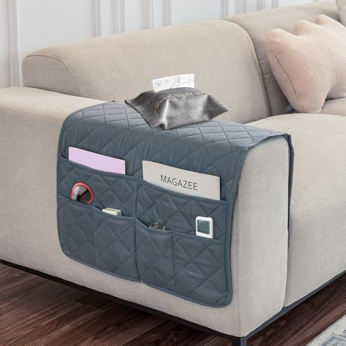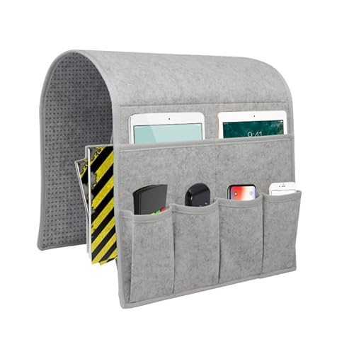 BLOOOK Sängsoffa armstöd organiserare med 6 fickor halkfri fåtölj caddie förvaringsväska fjärrkontrollhållare för vilstol soffa för iPad, tidskrift, TV-fjärrkontroll (medelgrå)