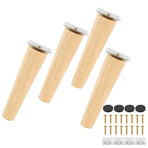 4pcs Möbelben i Trä 12cm Solida Avsmalnande Träsoffben Ersättande Sneda Möbelfötter med Monteringsplatta, Skruvar och Halkfria Mattor för Soffa TV-skåp Säng Soffbord Teskåp