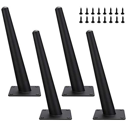 4 stycken möbelfötter i järn, svarta möbelfötter koniska sneda möbelben, metallfötter för möbler för soffbord, TV-hylla, soffa, lärostol, skåp, badrumsskåp, ersättningsfötter till skåp (38 cm)