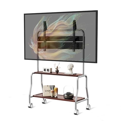 Mobil TV-vagn staffli rullande TV-stativ för 32 till 75 tums LCD LED OLED platta skärmar, rostfritt stål med hjul 100 kg max VESA 600 x 400 mm (dubbelskikt träförvaringshylla, vanlig stil)