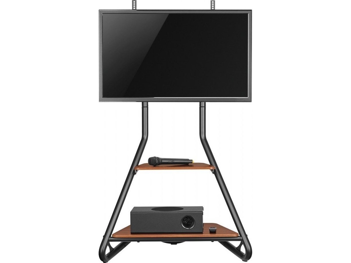 Unykach Mobilt TV-stativ med 2 hyllor och höjdjusterbart för 32–75 tums platta och böjda skärmar (upp till 45 kg), VESA max 600 x 400 mm