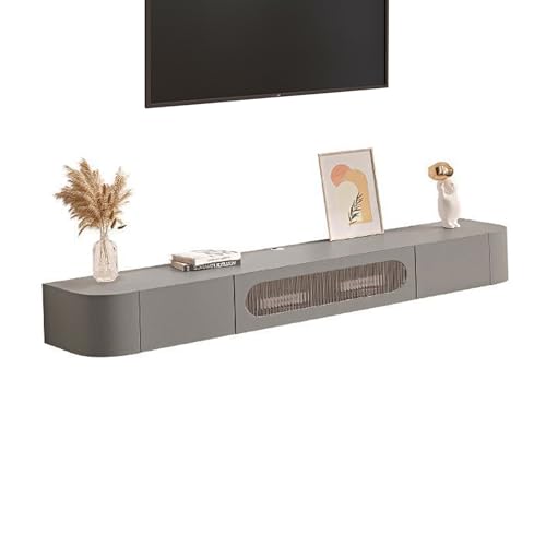 Hängande TV-bänk i massivt trä för vardagsrum, hem, soffbord, TV-stativ, TV-stativ 140, 160, 180, 200, 220, 240 cm, flera storlekar (grå, 300 x 20 x 24 cm)