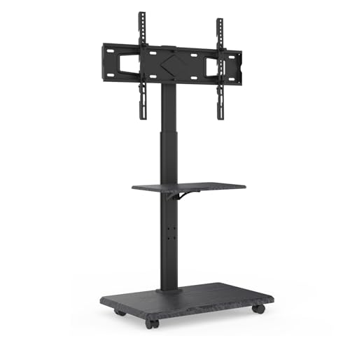 ONKRON Mobilt TV Stativ på Hjul för 40 – 80 Tum Skärmar, Rullande TV Stativ Golv Hjul upp till 55.5 kg - Golvstativ TV Hjul VESA 200x200-700x400/Rullbar TV Bänk Hjul med Hylla TS2771-B Svart