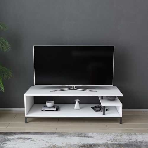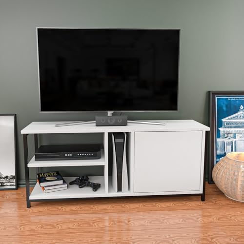 Hanah Home skandinavisk TV-stativ, vit, 120 x 35 x 50,8 cm | 100% melaminbelagd partikelbräda och metallram, 18 mm tjock | Snygg och funktionell design för moderna vardagsrum