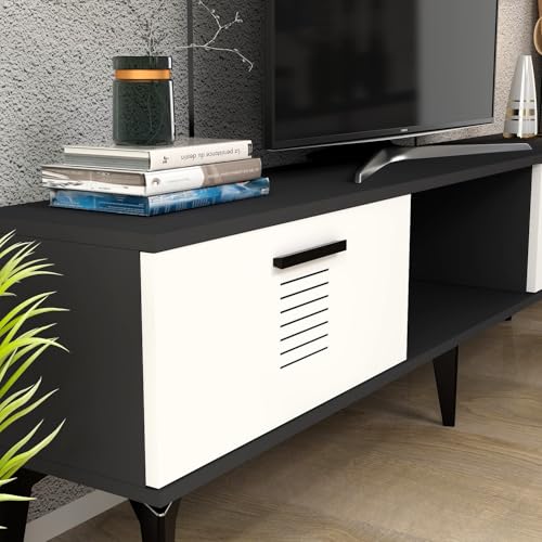 Hanah Home Stylish TV-stativ, antracit och vit, 150 cm x 44,6 cm x 29,6 cm | 100% melaminbelagd partikelbräda, 18 mm tjock | Modern design för vardagsrum
