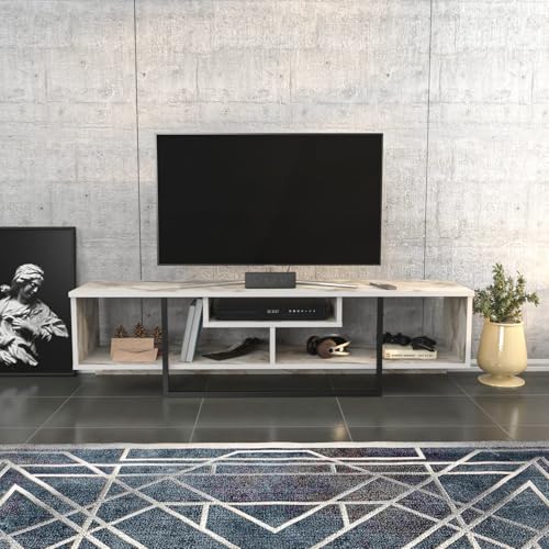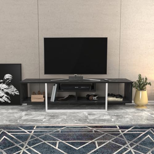Hanah Home Stylish TV-stativ, svart och vit, 150 cm x 35,2 cm x 40 cm | 100% melaminbelagd partikelbräda, 18 mm tjock | Modern design för vardagsrum och underhållningsplatser