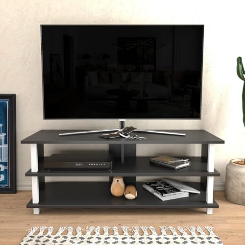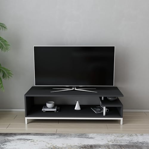 Hanah Home Stylish TV-stativ, 120 cm, vit och antracit | 100% melaminbelagd partikelbräda, 18 mm tjock | Modern design för vardagsrum och underhållningsplatser