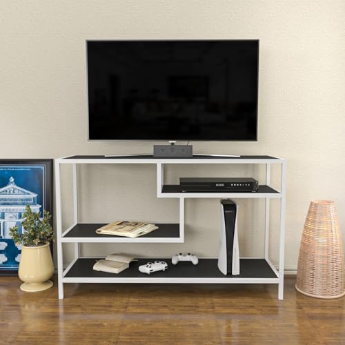 Hanah Home Stylish TV-stativ, svart och vit, 120 x 35 x 50,8 cm | 100% melaminbelagd partikelbräda, 18 mm tjock | hållbar metallram, modern design för vardagsrum