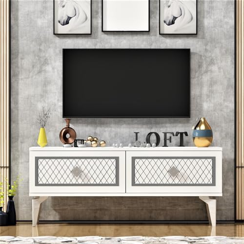 Hanah Home Stylish TV-stativ, grå och vit, 150 cm x 53 cm x 35 cm | 100% melaminbelagd partikelbräda, 18 mm tjock | Modern design för vardagsrum och underhållningsplatser