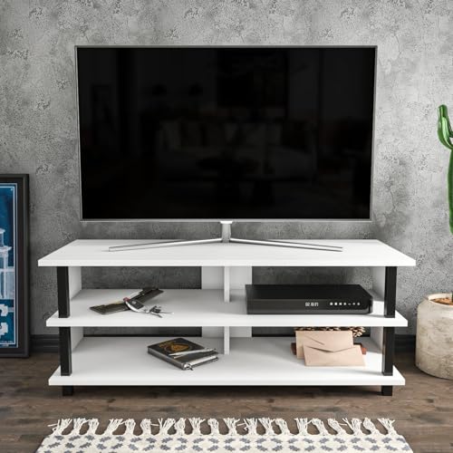 Hanah Home Stylish TV-stativ, 120 cm, vit och svart | 100% melaminbelagd partikelbräda, 18 mm tjock | Modern design för vardagsrum och underhållningsplatser