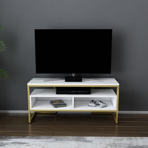 Hanah Home Glamorous TV-stativ, vitt & guld, 120 x 35 x 50,8 cm | 100% melaminbelagd partikelbräda, 18 mm tjock, robust metallram | Snygg och funktionell design för moderna vardagsrum