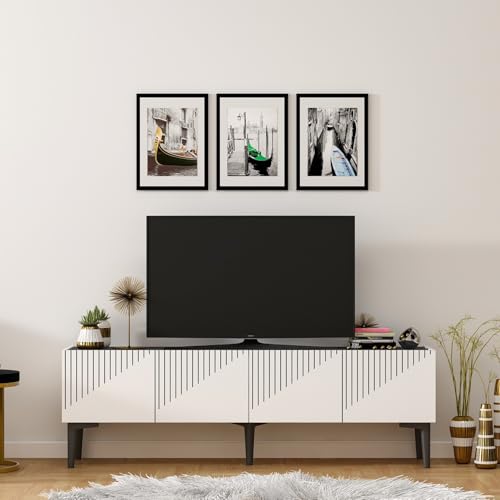 Hanah Home Traditionellt TV-stativ, vit & svart, 149,2 x 35 x 38 cm | 100% melaminbelagd partikelbräda, 18 mm tjock | Elegant design för vardagsrum