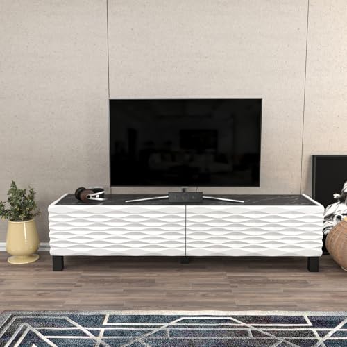 Hanah Home Stylish TV-stativ, svart och vit, 120 cm x 44,6 cm x 47,4 cm | 100% melaminbelagd partikelbräda, 18 mm tjock | Modern design för vardagsrum