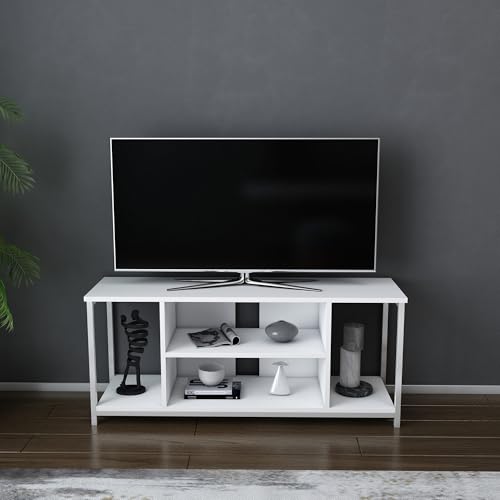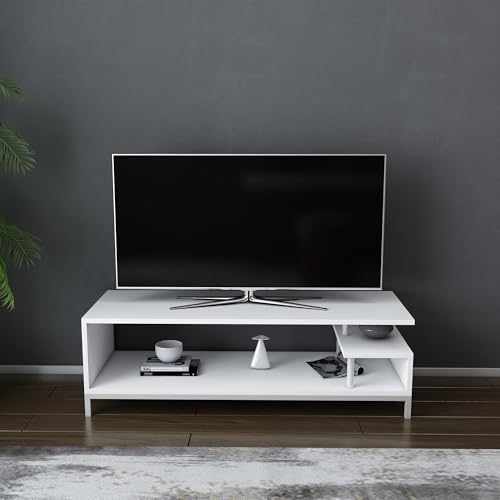 Hanah Home skandinavisk TV-stativ, vit, 120 x 35,3 x 50,8 cm | 100% melaminbelagd partikelbräda, 18 mm tjock | snygg och funktionell för moderna vardagsrum