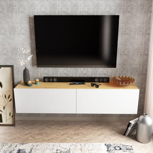 Hanah Home Stylish TV-stativ, White & Oak, 120 cm x 29,9 cm x 60,6 cm | 100% melaminbelagd particle board, 18 mm tjock | Modern design för vardagsrum och underhållningsplatser