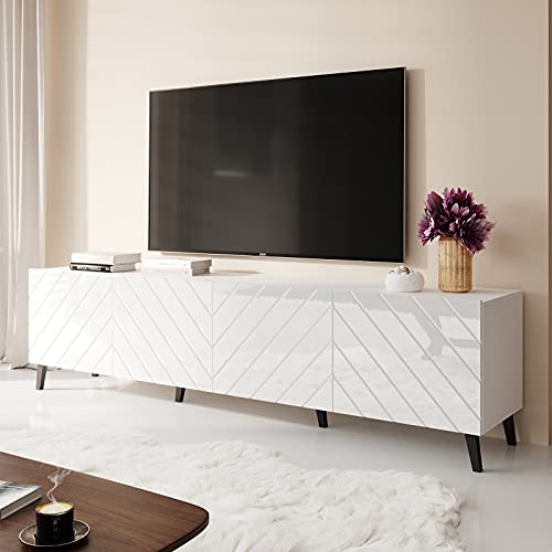 CMA Abeto TV-stativ 200 cm bred 4 dörrar vit högglansig svarta ben fräst fronter