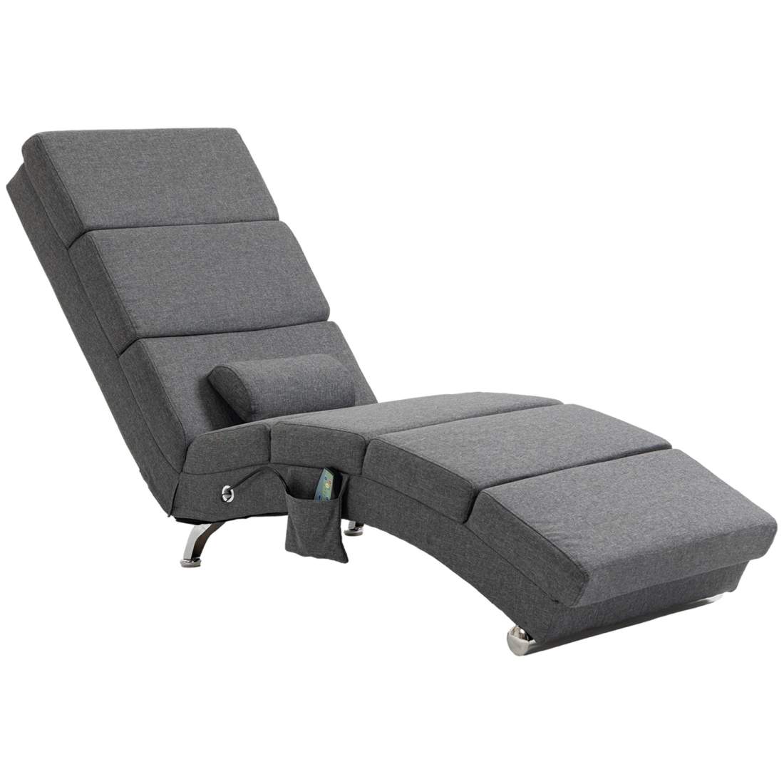 Avslappningsstol med liggfunktion, massagestol med pall och förvaringsutrymme, TV-stol med sidficka, konstläder, 78 x 86 x 93cm,
