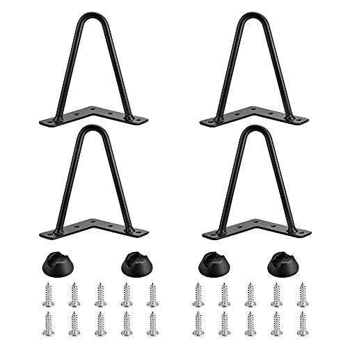 KLYNGTSK 4 st hårnålsben i metall, stabila bordsben, kraftiga metallben för möbler med 4 möbeltassar och 20 skruvar för gör-det-själv skrivbord, stol, TV-stativ eller soffskåp (15 cm (5,9 tum), svart)