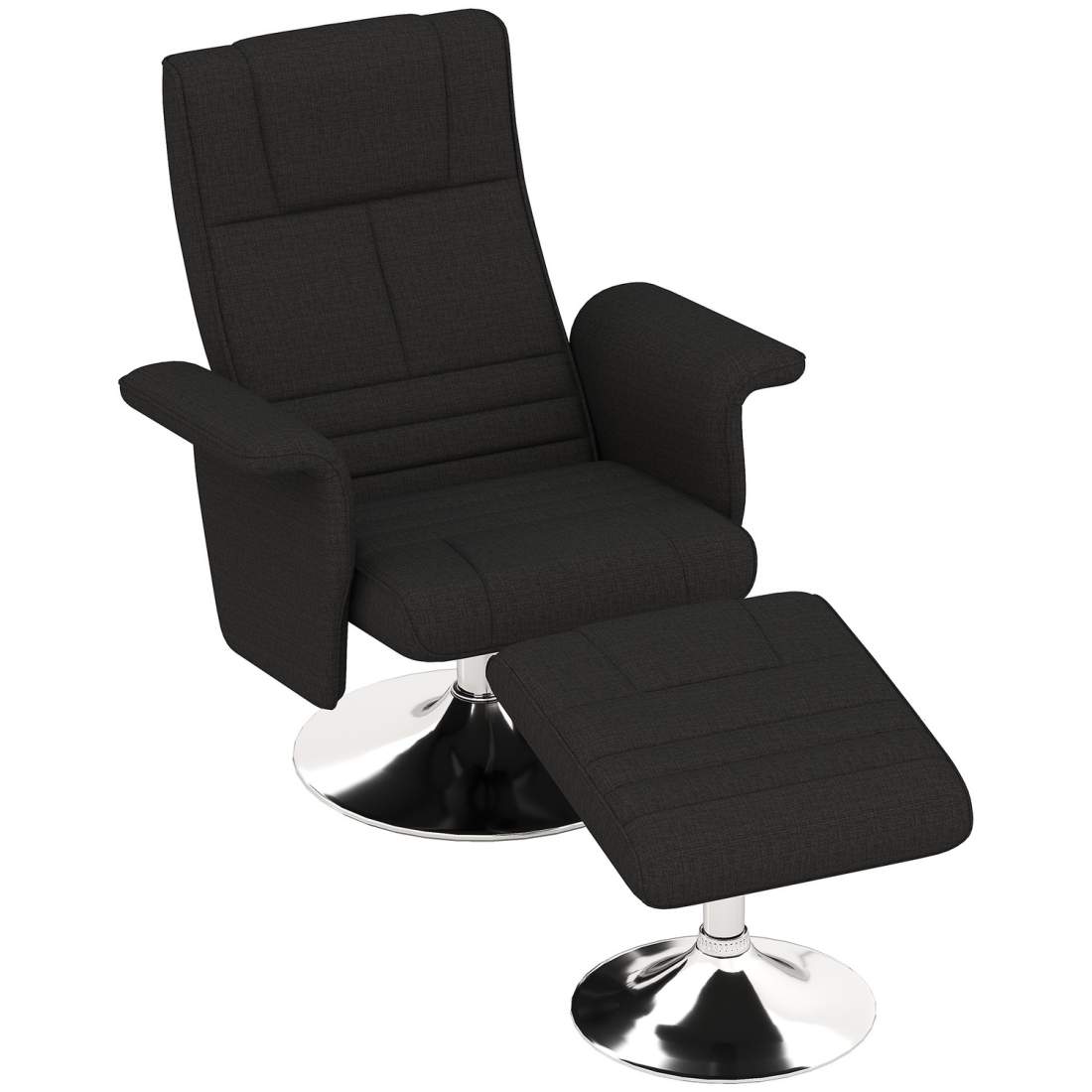 Avslappningsstol TV-stol med liggfunktion, linnelook, stoppad TV-stol med fotstöd, för vardagsrum, sovrum, svart