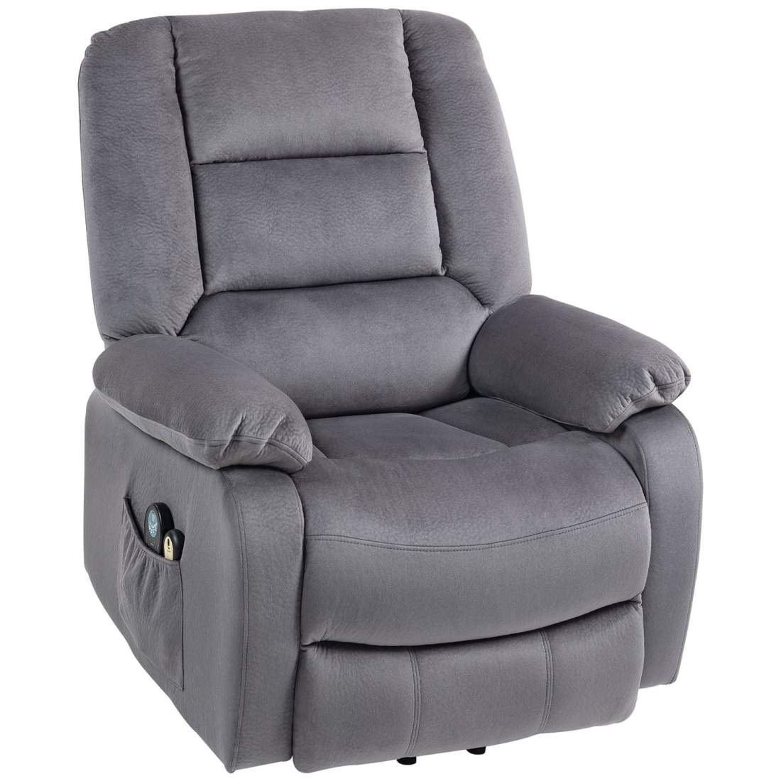 Tv-stol med ståhjälp, värme- och massagefunktion, fjärrkontroll och sidficka, mörkgrå
