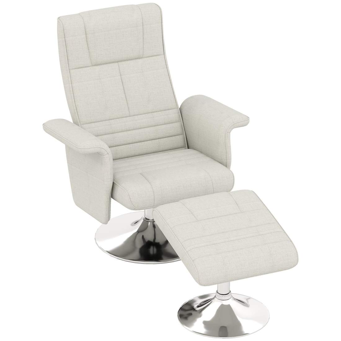Fåtölj TV-stol, utfällbart fotstöd, lutar upp till 160°, 64 x 86 x 102 cm, kräm