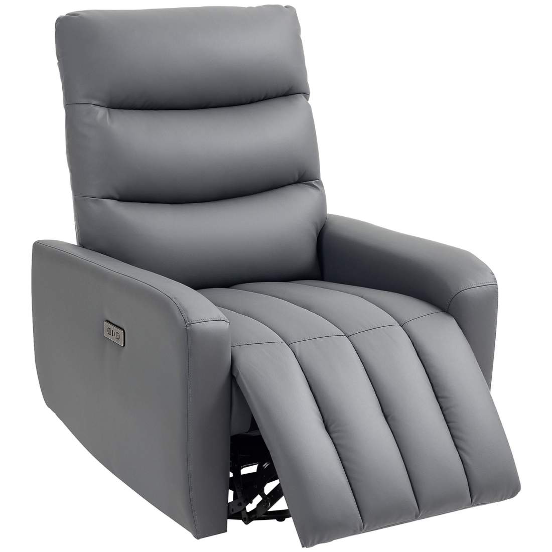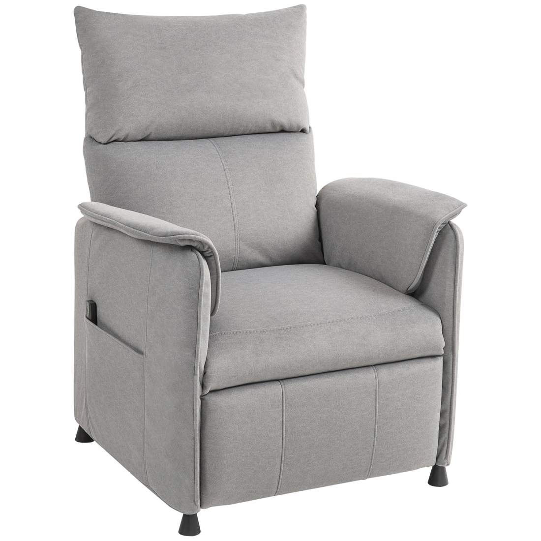 Relaxstol med fotpall, massagestol med liggfunktion, elektrisk vilstol med fjärrkontroll, TV-stol med sidficka, konstläder, grå