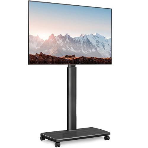 AX WABER Mobilt TV-stativ för 27 till 65 tums TV-apparater, bärbar rullande TV-vagn på hjul, höga universella golvstativ med svängbart fäste, justerbar höjd, stående montering, passar hörn, sovrum