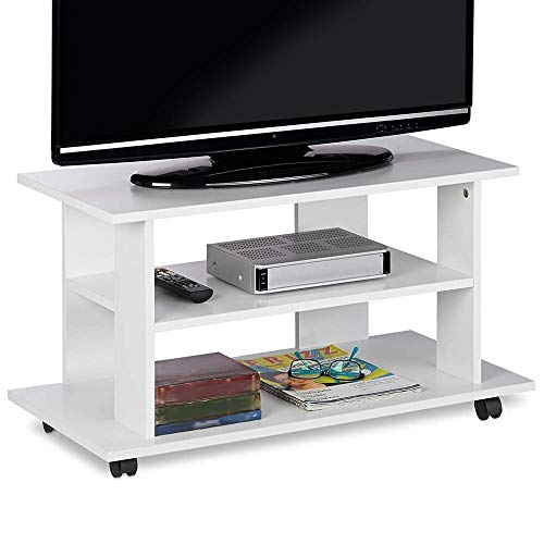 Bakaji Trä MDF TV-skåp med 2 hyllor Dörr Console Videospel DVD och 4 Hjul Skåp Vagn Dörr TV Design Modern Storlek 80 x 40 x 45 cm (Vit)