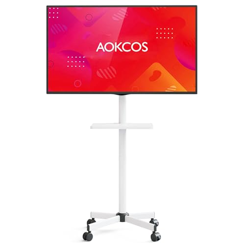 AOKCOS TV-stativ rullbar för 32–65 tums TV, TV-vagn med surfplatta, TV-stativ höjdjusterbar, mobilt TV-stativ med hjul, TV-rullvagn upp till 40 kg, max. VESA 400 x 400 mm (vit)
