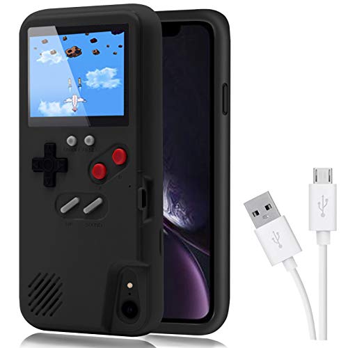 Telefonfodral för iPhone, tjock vagn färgdisplay, retro skyddande självdrivet fodral med 36 små spel, TV-spelfodral för iPhone XR (svart)