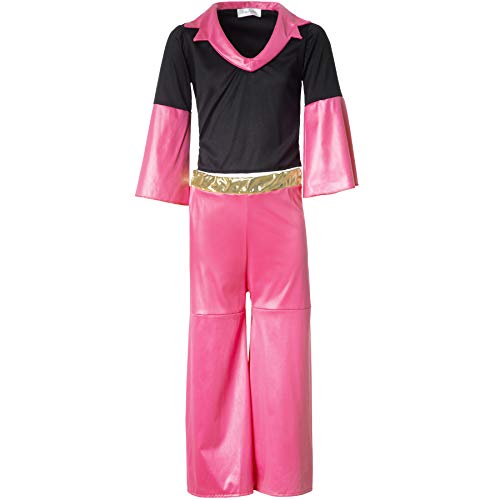 tectake dressforfun 302373 Groovy Disco Girl | Tvådelad disco-outfit i 70-talsstil | Svart blus med krage och trumpetärmar i rosa (11-12y)