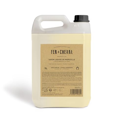 Fer à Cheval - Äkta flytande Marseille tvål - konserveringsfri och allergivänlig, den är skonsam mot den mest känsliga huden (UTAN Parfym, 5L)