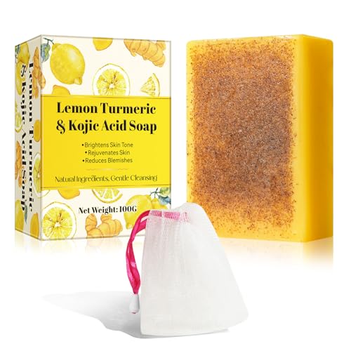 Citron Gurkmeja & Kojic Acid Tvål, Naturlig Hudskönhet Tvål Bar, 100g Palm Oi Bar Tvål 一 Ta bort akne pormaskar, mörka fläckar, slät hud, djuprengöring, skonsam tvål för ansikte och kropp fuktgivande