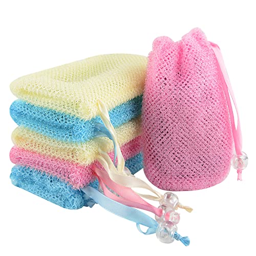 Linkidea 6-pack Exfolierande Mesh Tvålpåse Bulk Pack, grossist Multi-Pack, Nylon Bar Soap Saver påse med dragsko, Exfoliator Body Scrubber Tvål Fickhållare för baddusch