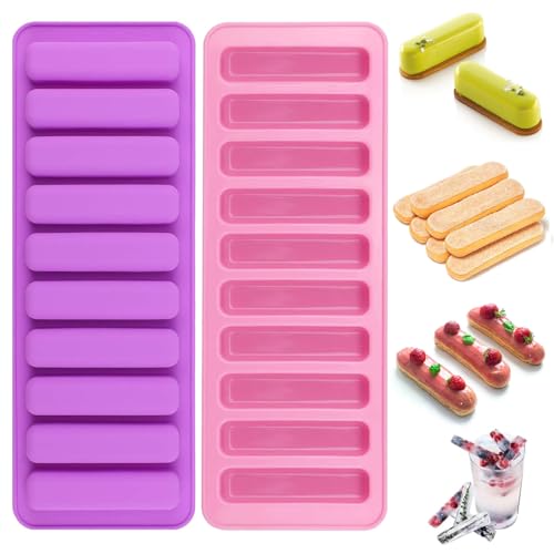 2 stycken müslistänger bakform silikonform, 10 tråg rektangulära energistänger silikon, bar form silikon non-stick BPA fri, müslibarform, silikonformar för chokladpinnar, isbitar, kakpinnar, tvål