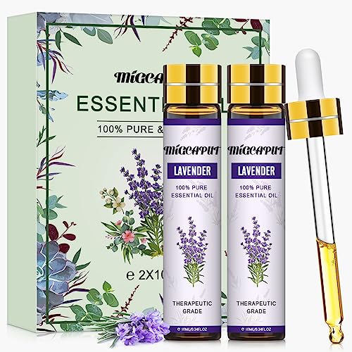 MIGCAPUT Lavendel Eteriska Oljor 2 x 10ML, Terapeutisk Kvalitet Lavendelolja, 100% Ren Naturlig Aromaterapi Doftolja för Luftfuktare Diffusor, SPA, Massage, Sömn, Tvål