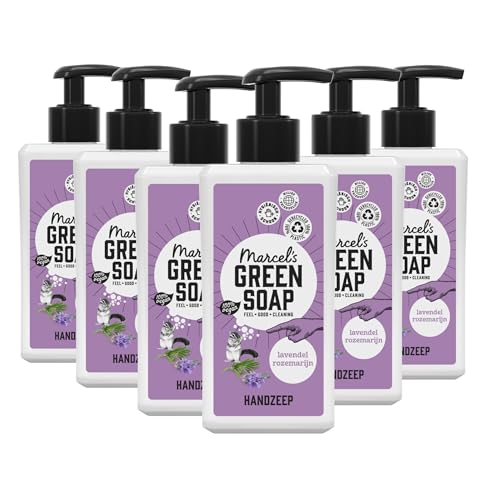 Marcel's Green Soap - Handtvål lavendel & rosmarin - Dispenser för flytande tvål - 100% miljövänlig - 100% vegansk - 97% biologiskt nedbrytbar - 6-pack - 500 ml